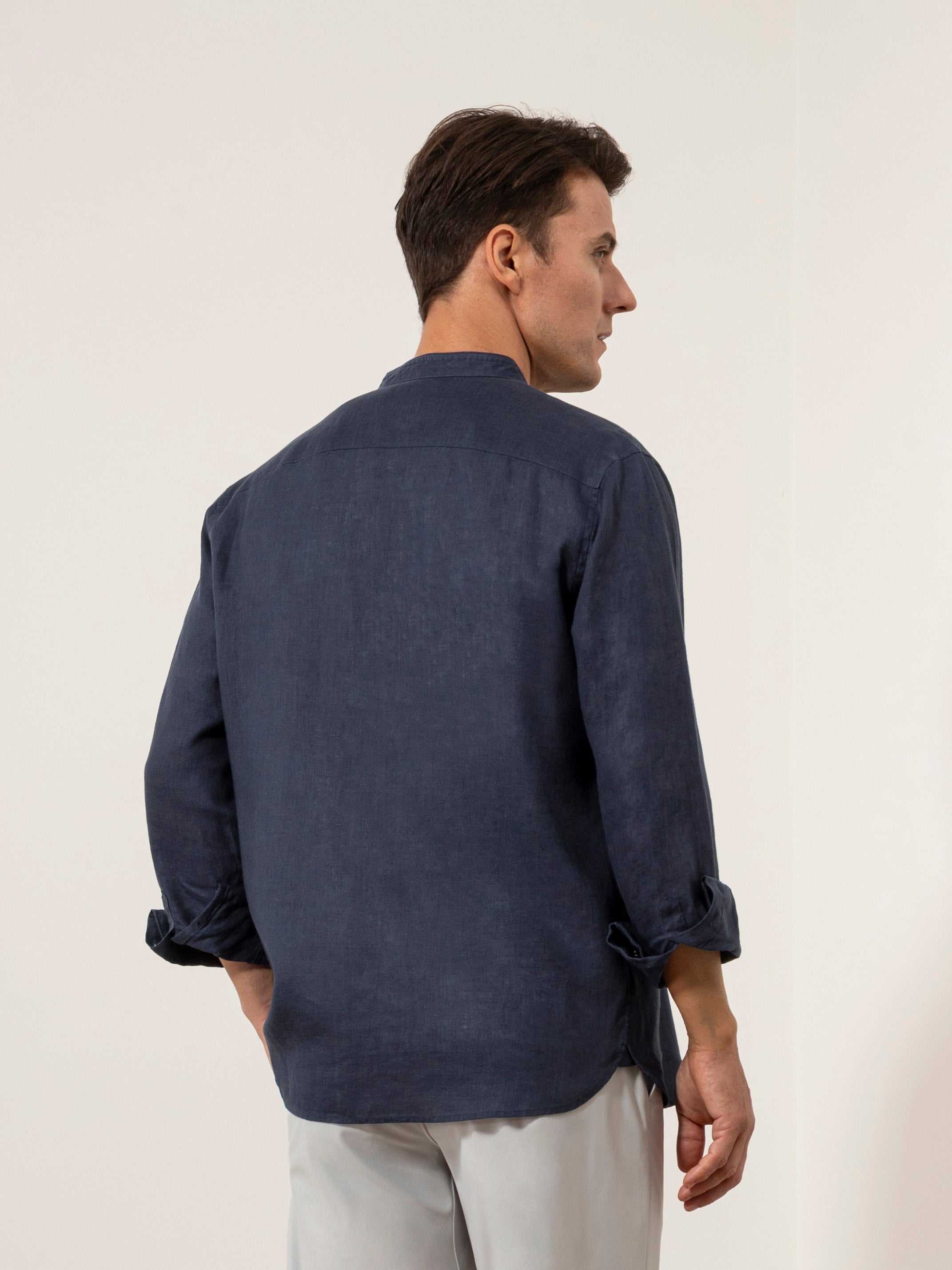 - Category: Mens Band Collar Linen Dress Shirt