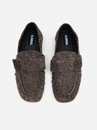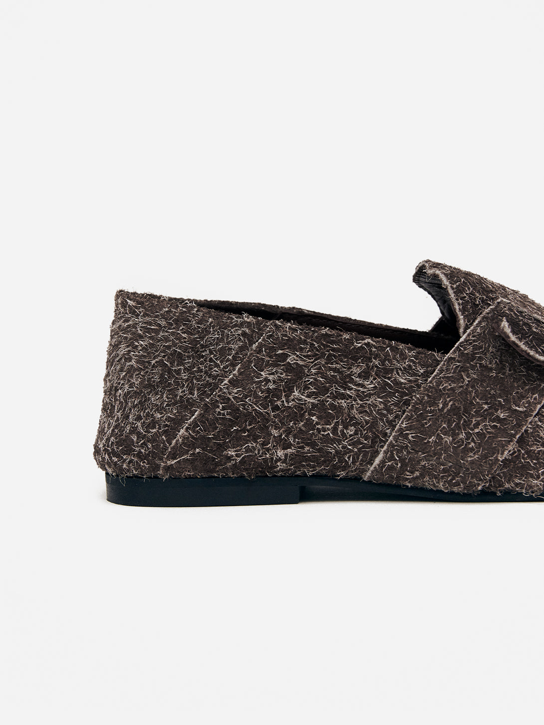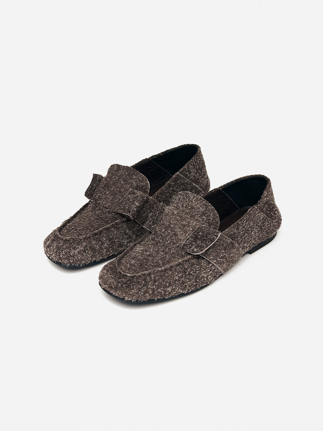 The Aeryn Suede loafers blend timeless design with a refined, tactile appeal. Crafted from rich brown fuzzy suede, they feature a gracefully rounded toe that enhances comfort while maintaining a polished look. These loafers offer a subtle yet distinctive elegance, perfect for elevating any ensemble with understated sophistication.